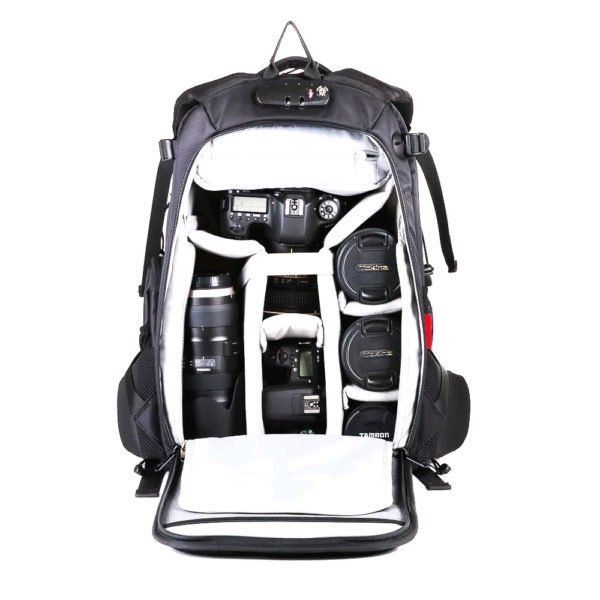 - السعة المرجعية: كاميرا DSLR واحدة + 5 عدسات + ملحقات + مساحة لجهاز كمبيوتر محمول مقاس 11.6 بوصة
