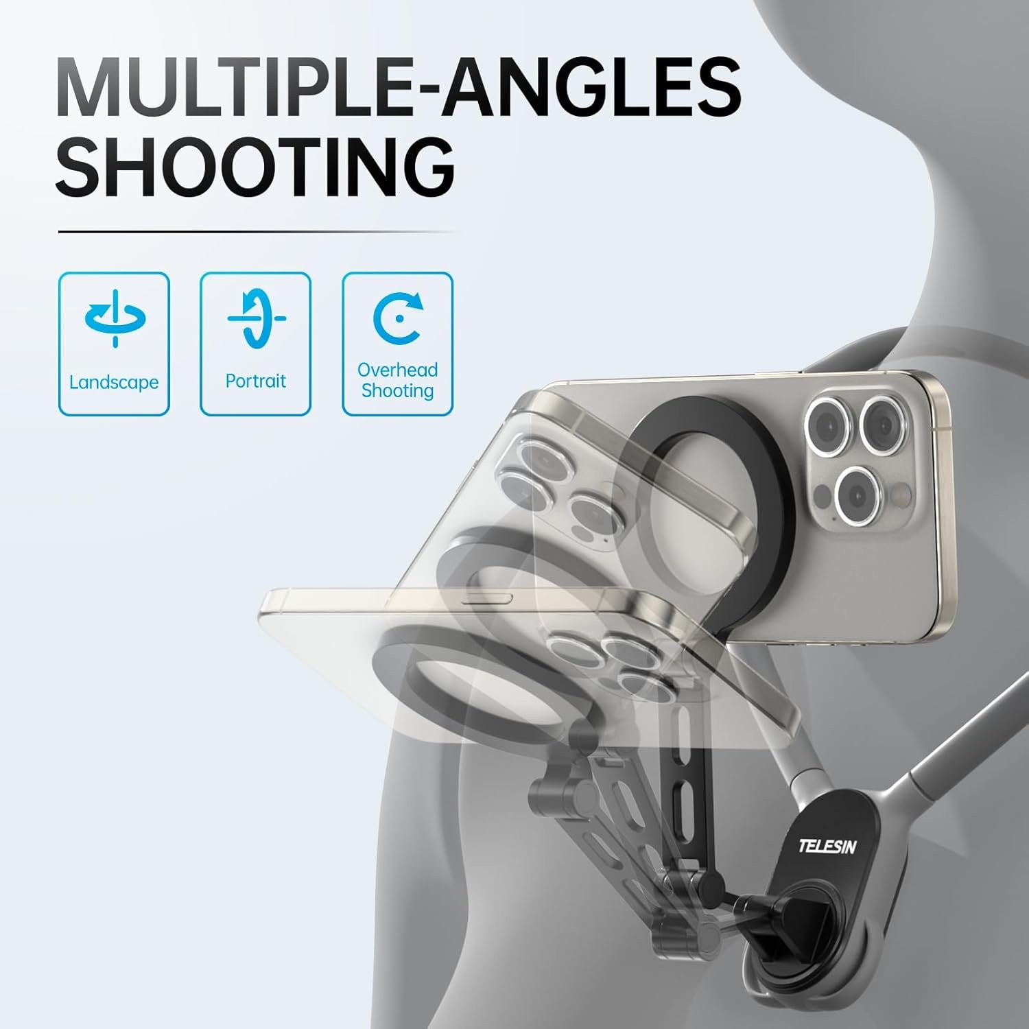 【Strong Magnetic Disassembly】The MAX neck phone stand adopts a magnetic fast disassembly design, built-in 16 pieces of strong aluminum magnets make shoot without fear of falling. Integrated zinc alloy rod lift structure, fast and easy to install, achieve the first perspective shooting, say goodbye to the tedious disassembly process of cell phone bracket.